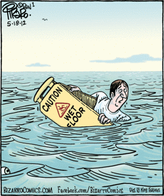 So this is the thought I am left with at the conclusion of my morning prayer time. And then, I open today’s newspaper as I do every morning after getting grounded in the Word. I make my way through all the noise in the world to my favorite section, the comics. And there, lo and behold, is an image that brings me back to the gospel today and it makes me smile. Guy should have taken the caution sign seriously.