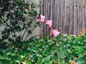 Looks can be deceiving. When dad pointed across the street my mind’s eye took in only the house. I didn’t know to look for the flower – gardener that I am I never learned the common name of the flower. So I heard him literally – naked ladies – and tried to connect dots with what I had pre-known or judged of the little cottage – concluding in that very brief moment that it just might have been a house of ill repute, housing a bunch of naughty naked ladies (these pictures to the right are not of the bed in front of the cottage my dad observed, but of blooms I spied on my morning walk in my neighborhood).